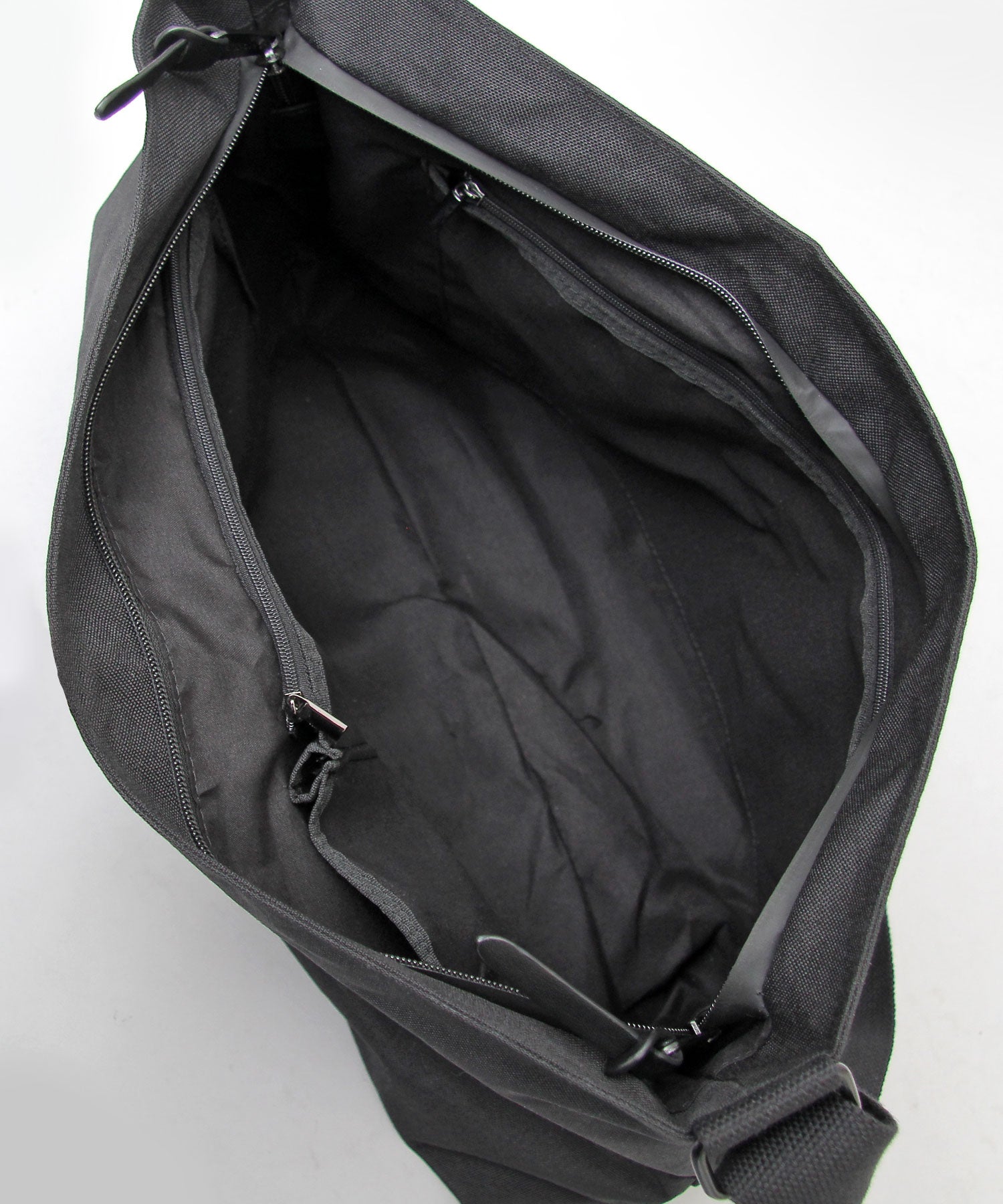 軽量なポリエステル素材に撥水加工を施した、大容量ショルダーバッグ。